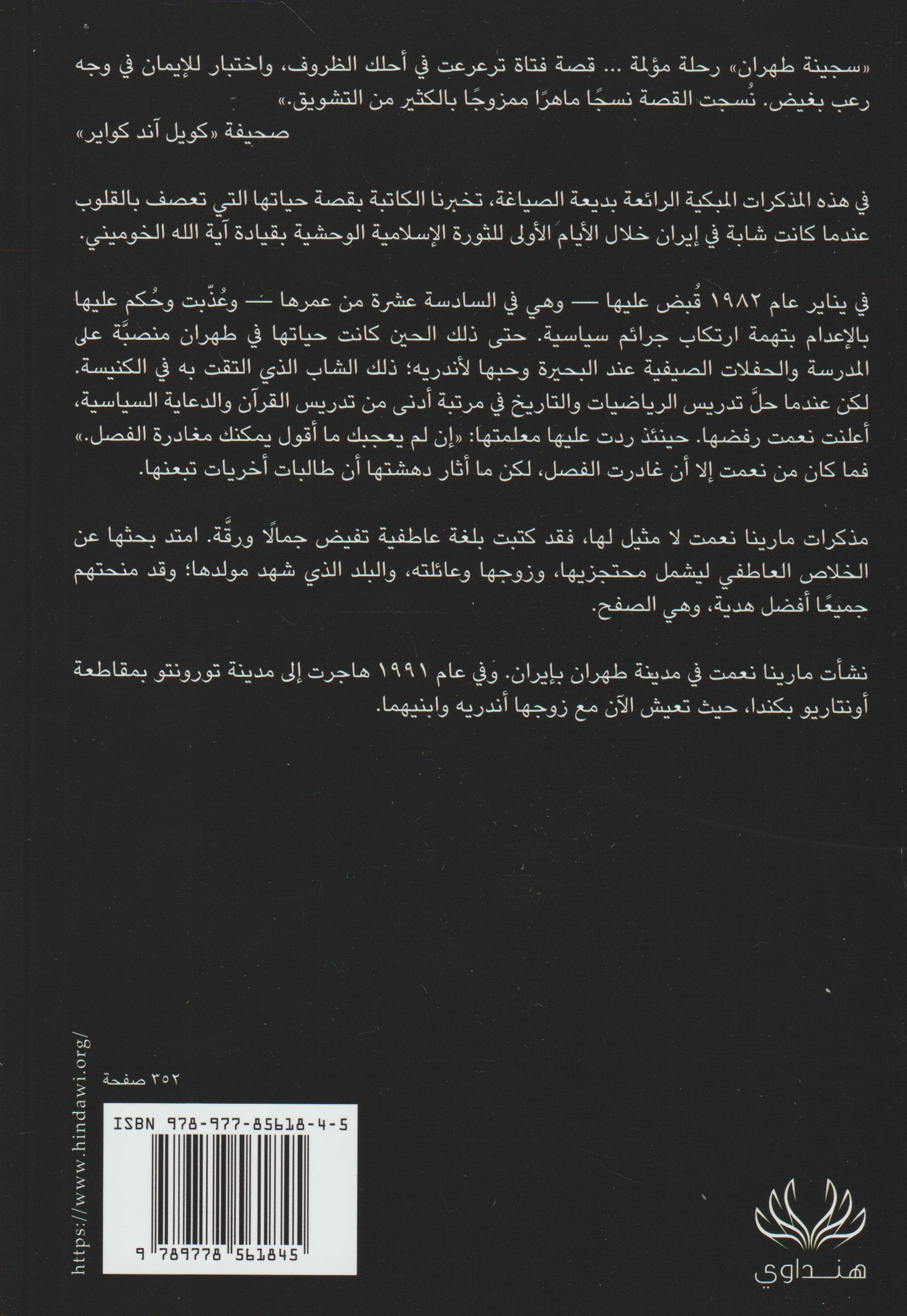 في الأيام الأولى للثورة الإسلامية على يد آية الله الخميني، اعتقلت مارينا نعمات في طهران مساء يوم 15 كانون الثاني عام 1982 في العاصمة الإيرانية طهران، وهي في السادسة عشرة من عمرها، ثم أرسلت فيما بعد إلى سجن (ايفين) في جناح للسجناء السياسيين المحكوم عليهم بالإعدام بسبب جرائمهم السياسية.